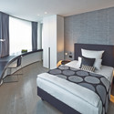 动态浮动的立面结构延续到单人房内各个地方,包括桌子、躺椅和梳妆台,具有多功能特征。浴室是开方式的设计,因此房间显得更大。高标准的技术特点以及设计使每个房间成为舒适的绿洲,用来进行交流和开展业务活动,或者只是为了放松。