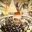 发光树项目利用现场独特开放和无结构室内公共空间,而诞生了七个巨型尺寸悬浮锥。树的上与下舞编动态创造了树的雕塑性行态,有动力的流量,迫使路人与其他陌生人放慢脚步以便欣赏这季节性的艺术装置。多个不同方向的接入点,尽可能让多个角度来欣赏该艺术装置,取决于观者在不同楼层的所在位置。