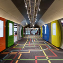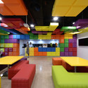 休闲娱乐区成形于世界著名的俄罗斯方块的重新诠释,俄罗斯方块是80年代电玩产业和明亮VGA颜色的标志。