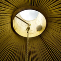 在茶馆的内部有可以随意调节的推拉门,因此茶客在这里可以感受到附近更多的风景,人们在里面可以选一幅自己最喜欢的风景画。白天, 阳光透过金色的天窗照射进来,此时茶馆可以是封闭的。整个室内装饰都是用麻绳编织出来的工艺品。壁炉位于房间的中心点。