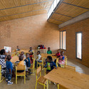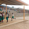 在基加利(Kigali,卢旺达首都),Rwanda MASS 设计集团在一片自然山丘上设计了这座 Umubano 小学。当地的艺术家和工匠利用他们材料方面的知识全程参与了这一项目。为了减少运输花费并让当地市场参与项目,纸莎草和砖在项目中得到了利用,而没有采用外地运输来的材料。当地的制造商和市场进行了经济循环,促进当地经济。