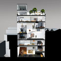 作品有着强烈简洁的概念:一系列堆叠模块代表了私密和公共的空间,同时充满了多样性。公共空间两层高,具有透明玻璃引入自然光,私密空间是单层实体,过滤光线。