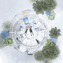 方案关注艺术进行的过程,而非结果。长长的纸卷上有艺术家的草图和正在进行的工作,让公众在观看展览同时能看到创造过程。因此方案有着圆形布局,像一卷纸。公共功能贴近地面,私密空间在螺旋楼梯之上。