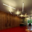 普通的常见的感觉在其中被反转。因此整个空间都强调了材料独特的特质。我希望为空间创造新的理念,给人一种陌生的感觉。但是我做的事情并没有什么伟大的。仅仅是利用了不同的层高以及对于普通荧光灯的布置,以此创造出新的设计。扭转的概念打破了普通的空间,让它显得很特殊。彩色的地板也是这样,每件东西在普通的同时看起来都很特别。