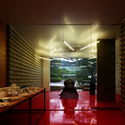 空间利用特殊的材料建造。你可以发现其中的地板是普通的尿烷地板,而墙壁采用了木板和砖块。这些材料都非常常见。这个空间没有什么特别的,我们接手它的时候就是这样。但是利用明亮的色彩,空间具有了一种特别的感觉,好像其中有着很多不同的层次。通过对普通材料的利用我们创造了超乎寻常的外观并且增加了空间的复杂性。人们会觉得其中的光线非常特别。但是其实只是采用了普通的荧光灯。