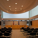位于美国威斯康辛州,由Zimmerman建筑事务所设计,这所希博伊根警察局在2011作为政府项目获得了2011美国建筑师协会威斯康辛的最有价值奖。或许该建筑设计最显著的特点是从结构中散发出的蓝色的光线----它是一种在社会中象征着法律和秩序的崇敬、威严的图像。据建筑师描述,这个30000平方英尺的警察局在设计中识别了方案的冗余,传达了一种最佳的灵动空间,而又不会影响其服务功能方面的设计。通过这样,平面沿着一根主要的流线轴布置,使得警察局不同部门在维持各自隐私的同时,可以共享公共空间和公共流线。
