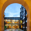 新建的玻璃建筑通过镜面反射,不仅映射出旁边两座建筑的风貌,还将周边的都市景色纳入院内。从外面的街道到内部的铺石小院,病人们可以方便进出。他们中很多人只是来看门诊,所以这样的可达性能够让他们感受到友好的氛围。