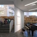 这座学院本在一自然保护区内,但是建筑师说服业主将其建在了旁边的废弃矿场中。项目希望利用这种被破坏了的自然,而不是在保护区内进行“破坏”。建筑依据峭壁上开凿的线条建造了线性的空间,其中有多种学习项目,通过一座30米长的石桥到达。建筑南立面具有小窗和垂直的石缝。走廊上天窗采光。而建筑另一面靠近树林。项目展示了如何利用周边超过100个的废弃矿场资源。
