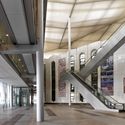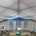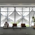 新建筑立方体的形态环绕着80年代的旧建筑,为其提供了城市尺度的新外观。三维的白色薄膜材料覆盖在钢结构上,提供了遮阳。立面的挑战之一是当地的高温,夏天钢索的温度可以达到80摄氏度,而晚上又会因为低于零度的低温而收缩。温差同样也带来了能源问题。建筑的主入口位于一层,而二层是女士的独立区域。