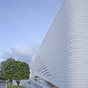 建筑外部是多个互相不同,通过连续的玻璃条带相连的体块,体现出内部的漩涡体系。这些体块以不同的材料和结构被突出表现。