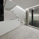 外立面直接与抬高的室外空间相连,由形态优雅的水平窄缝形成,既提供了向外的视野,又保证了与街道之间的隔绝。