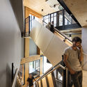 RMA团队在室内大量使用木材,包括开放欢迎的主楼梯和走廊空间。