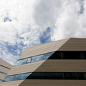 我们认为图书馆应散发一种心情,因为它是一个充满非物质创造力和灵感的地方。因此,我们选择了表现力十足的风景和变化力很强的轮廓作为主要的建筑表现。建筑体外围包裹着白陶土元素。由于各个连接点和间隙都是水平的且围绕建筑周身平行排列,即便从不同的角度观看这些倾斜的建筑表面,都十分规整。房间均可通过窗口自然通风。南侧分区可使人和书籍免受太阳直射,避免过高温度。