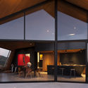 前方是大的滑门,让起居空间向露台开放,设计强调了屋顶线。