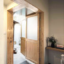 Office AIO 在庭院小房间门口加建了一个小角部分,拆除了原有立面,为客房创造了一个L型的入口空间,L型的门面现在由一副中式双折叠门占据,一扇作为日常入户门,释放第二扇门朵时,向外翻转折叠,玄关外的空间便变成一个迷你的室内庭院。