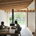 中心的阁楼是一个平静的空间,被屋顶环绕,木地板和榻榻米可以供人休息,放松和睡眠。木地板和榻榻米比Doma高一些,使得它们像是游廊一样可以坐在上面。另一方面,Doma,包括厨房在内,是一个过渡空间,联系了室内室外,也作为活动和人们交流的空间。这是一个与日常生活相关的空间,可以邀请邻居进入。