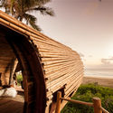 这个树屋去掉了所有不必要的元素,提供一个自然,身临其境的休闲寓所。一个过大的原木拱门完美地弯向竹子覆盖的平台。前方和后方用最小的本地制造的家具,都拥有畅通的视野,舱口的窗户持续地辐射自然的剪影并支持被动式降温。内部和外部的竹材料反应向外伸展的平台。当地采购的木制地板边缘、天花板和墙体,每个都是错开的自然界中随机发现的园林元素,希望能够鼓励游客放飞身心。一个两人的吊床悬挂在空中给人真实的悬浮,坐在上面可将美景尽收眼底。