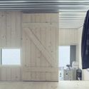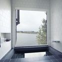 通过不用的处理方式而制成的木材,构成了各色的墙面花纹。入口处及洗手间的瓷砖为房屋增添了一抹别样风采。浴缸与洗手间使用了同样的瓷砖,并嵌入地面,以呈现不间断的,没有阻碍的自然风景。室内的屋顶由梯形金属板组成,与温暖的木材形成一种有趣的对比,同时将海洋和天空上的光线反射至屋内。