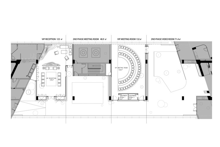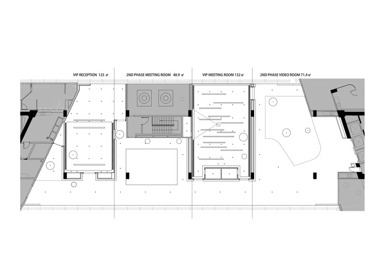 VIP区的设计灵感起始于Steven Holl建筑工业外壳带来的“盒中盒”概念。每一个功能体块都代表着一个空间个体。我们用暖色木材来制造与混凝土和金属外盒的对比。