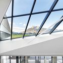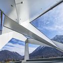 根据这里的视野范围,建筑的环形结构被当做是高山天际线的延续,从地形上来看,也可以看作是一个突出的独立体。这个富有特点的入口高楼成为了该建筑的最高点。