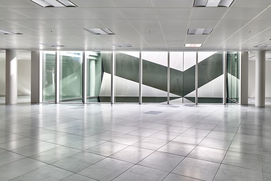 该建筑围绕中心交通核进行配置,在各个层面提供大型的免费办公空间。 一个雕塑主流线交通楼梯被放置在交通核可见度良好的位置,以鼓励各楼层间楼梯间的使用。