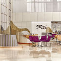 叶片内侧做了不同色度的灰色烤漆处理和紫色座椅一同减弱周围人来人往对内部的打扰,让客人可以更安静的与朋友相处,或享受一个人的独处时光。