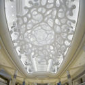 该装置安装在奥兰多会议中心内,它是一个两层结构体,由一个单一的光滑白色表面体合成的网状结构。这种形式表现出了该工作室的设计目标——“将表面,结构和空间结构结合在一起,建立一种新的体验”。