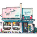 创作灵感来自建筑所特有的韧性和特色,Urbanowicz开始用一系列水彩插图来记录这些店面,并在整个过程中同时制作了视频。