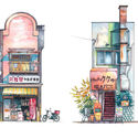 这些插图展示出了东京各种各样风格的建筑,这些建筑所使用的元素包括了传统的瓦屋顶和圆形窗口。其中的许多细节描绘都是源自于真实的生活,Urbanowicz通过这样的艺术创作“填补了设计中的空白”,创建了一个令人愉快的组合。
