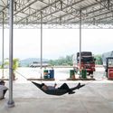 该汽车加油站是一个综合建筑。人,动物,植被,机械设备都能够在此停留进行能量补充。它不仅具有物质价值,同时也具有精神价值,所有的相关行为都在一个重要的循环中联系在一起。Phuc Duy加油站是一个循环结构体,其相互之间的各个功能结构是封闭的,但有足够的距离来加强这种和平的服务。