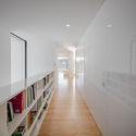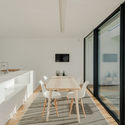 在二楼,外墙与天花板由外墙外保温系统包裹;室内,油漆松木地板铺满整个室内地面。卫生间的墙壁与地板则由白色大理石板构成。厨房中操作台与地面的一部分用来自Consentino的赛丽石板“宙斯”装就,碗柜也用同种材料制成