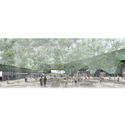 这个方案关注的焦点是公众性,重构了原来展览中心 的形态,将空间延伸到基地的边界,连接现有的元素并将其转换成一个公众广场。广场被树木环绕,保持着这座建筑作为礼堂和公众休闲场地的身份。