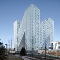 它平行于城市主干道展开,以迎向市中心的一侧为制高点,在大幅高低起伏后衰减为小幅波动,经过十字路口向北转折后形成平缓延伸,变化的轮廓线产生强烈的律动,引导视线至创新园主体建筑群。