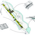 第三名的成功之处在于它的方案保留了原有的石砌谷仓并在临近建筑的摆位上下足了功夫。这个设计使得自然风景与其隔热的屋顶花园完整合一,并将其与可再生地热能源结合,以提供能量给石仓和周围建筑。这个新设计尊重旧址,保留了与现有结构的视觉关联。