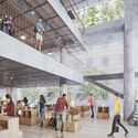 这个10层的塔楼中底部的4层为展厅,顶部的6层是办公室。不像传统的展示空间, 这个展厅整合了中心公共空间,可以作为一个创意社区活动的平台。一个巨大的玻璃幕墙入口欢迎人们进入, 直接引导访客进入相应的社区空间。 建筑的前端是一个有螺旋楼梯的中庭,为建筑提供了垂直交通,同时加强楼层和公共空间之间的互动。