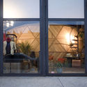 在主要空间中央插入三组构件;两组“地壳”和酒吧顶篷。地壳是受圆顶启发的网格多面体,被覆上道格拉斯冷杉(Douglas fir)和西部红雪松木板,从材料上与太平洋西北部产生联系。零售空间利用玻璃店面实现展示功能,并设有一个从街道进入的指定入口。从街道上便能觉察到空间内有一个完整的网格状圆顶。