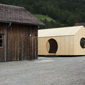 本项目原名:Exhibition House。设计师为卡斯帕·格雷贝尔(Kaspar Greber)木材建筑公司及其合作伙伴设计了一座展示小屋,超越了传单和样品这种传统的表现方式。潜在客户和游客们可以通过触觉、嗅觉、感受来亲自体验产品及其建造。设计师使用该地区经典的山形屋顶以展现公司在房屋制造方面的核心竞争力。
