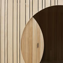 公司的室内实木产品 “Nadelstreif/Pinstripe” 体现在展品的建造和展厅内部中。各种表皮的和不同木种(云杉、枞木、橡树)诠释了它们自身的特性,同时还将展厅内部的展览空间分为不同的展示区域。天然未经处理的自然木材营造出一种舒适的氛围,充分展现出这种建筑材料的优点。
