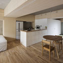 这些矩形的柱和梁将居住单元的空间最大限度地扩张,将大量的物体和设施包含在内。它们创造了一个立体的于折叠般扩展与压缩并存的生活空间,並且影响着其家具布局和居住者的生活方式。最后用砖砌成了厨房矩形工作台,和一个由陶瓷片构成的洁净明亮的洗手槽,这个居住单元就完成了。