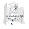 多彩管道吸引人的趣味存在,鼓励探索式的交流互动,吸引访客游览或最起码一窥园区内不同的公共和私人功能。活泼的导览和交通空间,挑战专业化的普遍规则,为在工作文化中只被普遍视为休闲的活动提出新的看法。