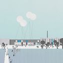 整个获胜作品里遍布彩色的粗管,从物质和视觉上将分散的建筑联系起来。该方案将导管、管路和地铁隧道等基础设施元素重新利用,形成人流的组织元素,创造出高科技活动的新工业类型空间。