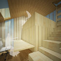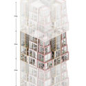 一等奖方案‘塔中之塔’(Towers within a Tower)重塑了垂直生活的概念。不像传统的堆叠式公寓,独立单元的垂直轴线是交错的,在香港建立一个可重复使用的模块。递进的外立面在楼板之间可以获得更多的自然光线,还有流线和庭院。