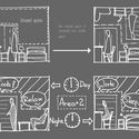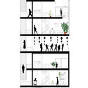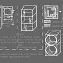 第三个方案‘反转机械住宅’(Upside-Down Mechine)从代谢运动中的胶囊塔中汲取灵感,将微型单元住宅作为一个机械化区域,以提高灵活性、美观性和效率。路径和浴室被固定在中央核心筒,同时起居空间有节奏的旋转和交换。该方案因对住房危机技术解决方案的反乌托邦式未来批判而受到赞扬,加剧了城市生活的恶化。它不是作为一个坚定的解决方案,该方案依赖于对内在乐趣的乐观看法“在公共领域的舞台上,将私人家庭的活动与公共领域的活动联系起来”。