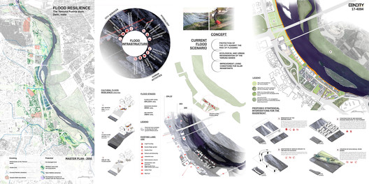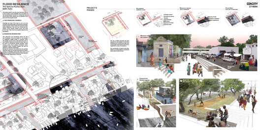 “弹性解决了德里的多个关键问题。它为非正式社区创造了一个民事结构和保护。它结合了公共空间和洪水疏散。它恢复了“生物死区”。设计方案中正式地提出了印度严重的水资源短缺。”——评审组成员BryanBell