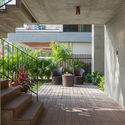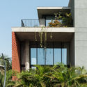 在地面层,前端为停车位,而后端由一个佣人间和一个室外花园相连的多功能厅组成。在上层居住空间中,诸如厨房、餐厅和卧室等私密空间被安排在房子的内部,而前部则为客户提供了与自然互动的空间,因此在两边都包含了半开放空间,可以很好地与邻里联系,而中间是一个两层通高的的生活空间。在中心的连接空间中有一个祷告区域,从二层和三层都能看见。