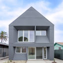 位于洛杉矶南部的基地周围的房屋都用围栏围住边界,一次防止犯罪。IVRV 在功能上最主要的概念是在保持 HFHLA (洛杉矶仁人家园) 典型独户住宅的用地大小(1200平方尺上建造3间卧室和2.5个卫生间)的同时最大化受保护的室内外可居住空间。为了达到这个目的,在场地允许的宽度内建造了两层坡屋顶建筑并从中抽出室外空间。传统的形式经过一系列的操作变成了一反往常的样子。南端(住宅后部)有所倾斜,以此加厚墙体做隔热层,并为嵌入的窗户提供遮阳。北端的屋顶(建筑前部)被切去,将天光引向室内阳台、卧室和入口庭院。其独特性不仅在于新颖的形式,也在于形式在过程中服务功能。