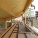 IMPLUVIUM 具有一个巨大的叠层木材结构的屋顶。它的组件都在工地上生产、安装。这里曾是一个遭受了火灾的集市。屋顶和四个自地板延伸上来的盒子是不可缺少的基础设施,它们令很多事件活动得以在同一个天花板下进行,无论是自然发生的还是经过规划的。