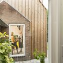 阁楼有足够大的面积来作为储藏空间,同时也可以作为休息场所。庭院内的一棵大树也为建筑室内提供了必要的私密性,同时也成为了通过屋顶的老虎窗可以欣赏到的景观。该设计还考虑到将来扩大工作室的规模、将卫生间引入室内的可能性。这样,这座工作室就可以作为客户的一个儿子的小住宅,或者将来的屋主的监护人的住宅。