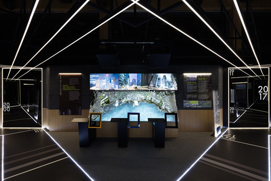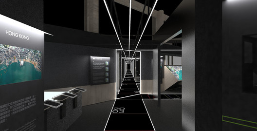 参观路线是设计主轴。玻璃镜面反光及连续不断的灯光造成一条无限伸延的时间线。光与反影揭示出无尽的想像空间。它令整个展览编排变得多元,扩阔有限的空间,并为每一个角落带来香港不同地区的新角度新视野。