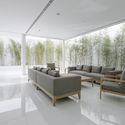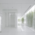 清丽的光,纯净的白,青翠的竹是空间的主要元素。环绕建筑的庭院、天井和天窗,不仅最大限度地模糊了室内外的关系,还为建筑带来了全方位的自然采光,每天不同时刻的光影变化为空间带来了丰富的表情。纯净的白将室内所有元素和材料整合起来,营造出极度纯净而抽象的空间氛围。